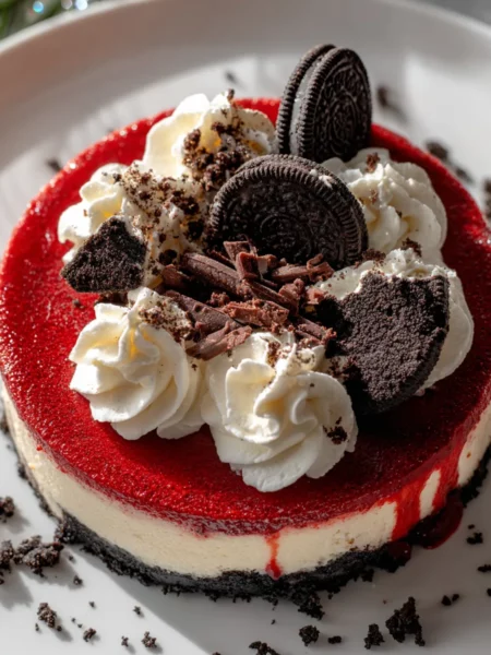 Christmas Red Velvet Cheesecake with Oreo Crust