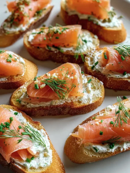 Smoked Salmon Crostini with Garlic Herb Cream Cheese