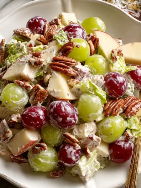 Creamy Apple Salad with Grapes & Pecans