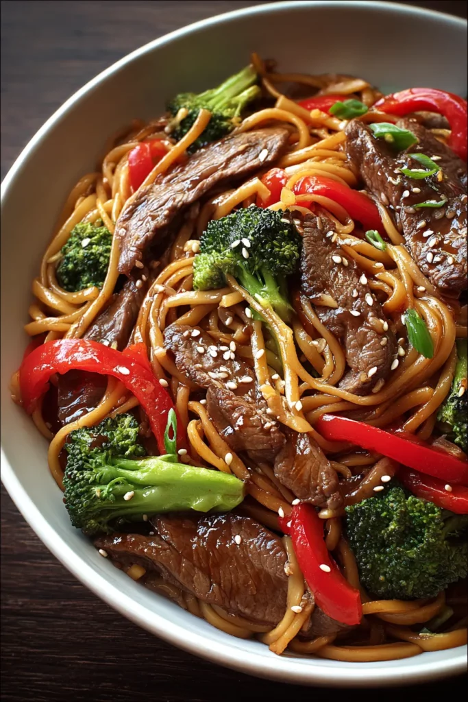 Let’s be honest: there’s something magical about a stir-fry that sizzles in a hot skillet, filling the kitchen with hints of honeyed soy sauce and gentle ginger spice. I still remember the first time I tossed everything together and tasted that luscious sauce mingling with crisp broccoli and sweet red peppers—it was love at first bite! Whether you’re feeding a crowd or whipping up a solo serve, this recipe adapts beautifully. Swap in udon for lo mein, toss in snap peas, or add a pinch of red pepper flakes for some heat. Trust me, once you’ve mastered this Beef Teriyaki Noodles formula, it’ll become your go-to for a fuss-free yet flavorful meal that brings friends and family together around the table.