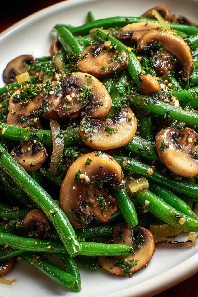 Experience the harmonious blend of garlic and butter that perfectly enhances tender green beans and savory mushrooms. A vibrant and healthy addition to any meal!